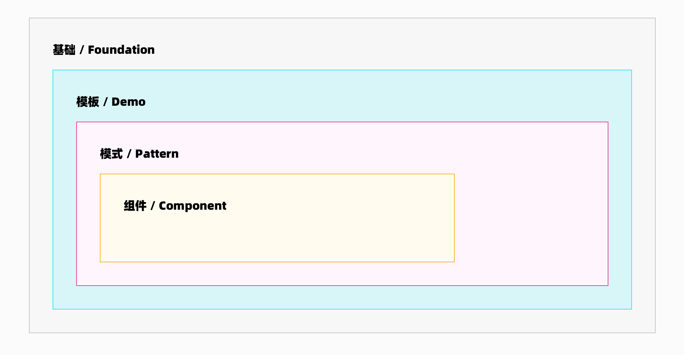 纵观整套设计系统,它其实就是这组件、模式、模板、基础四大部分的一步步收敛和包含。